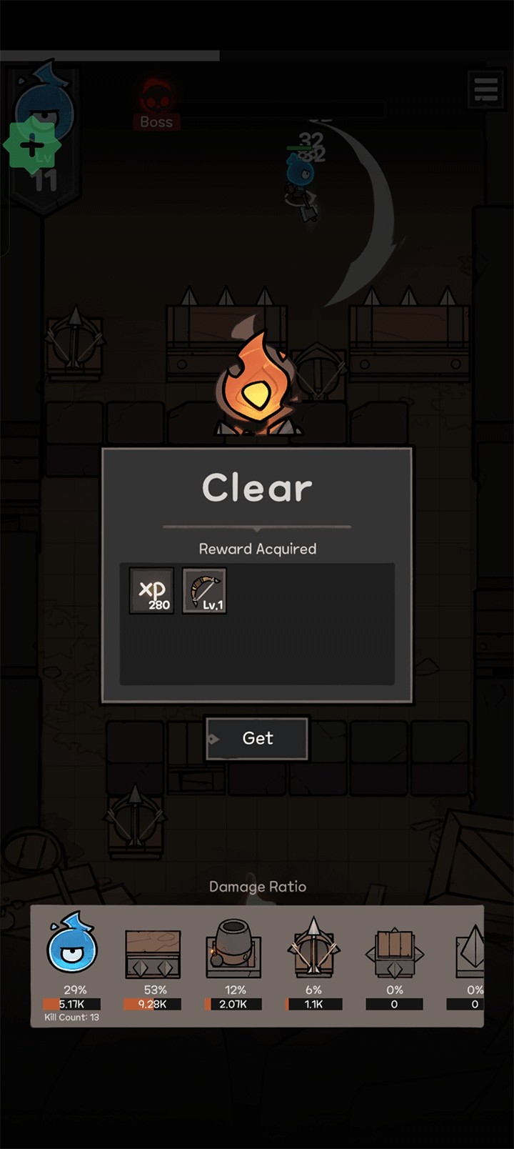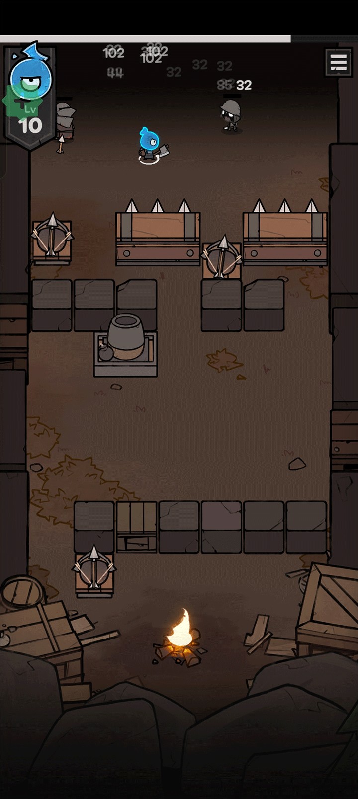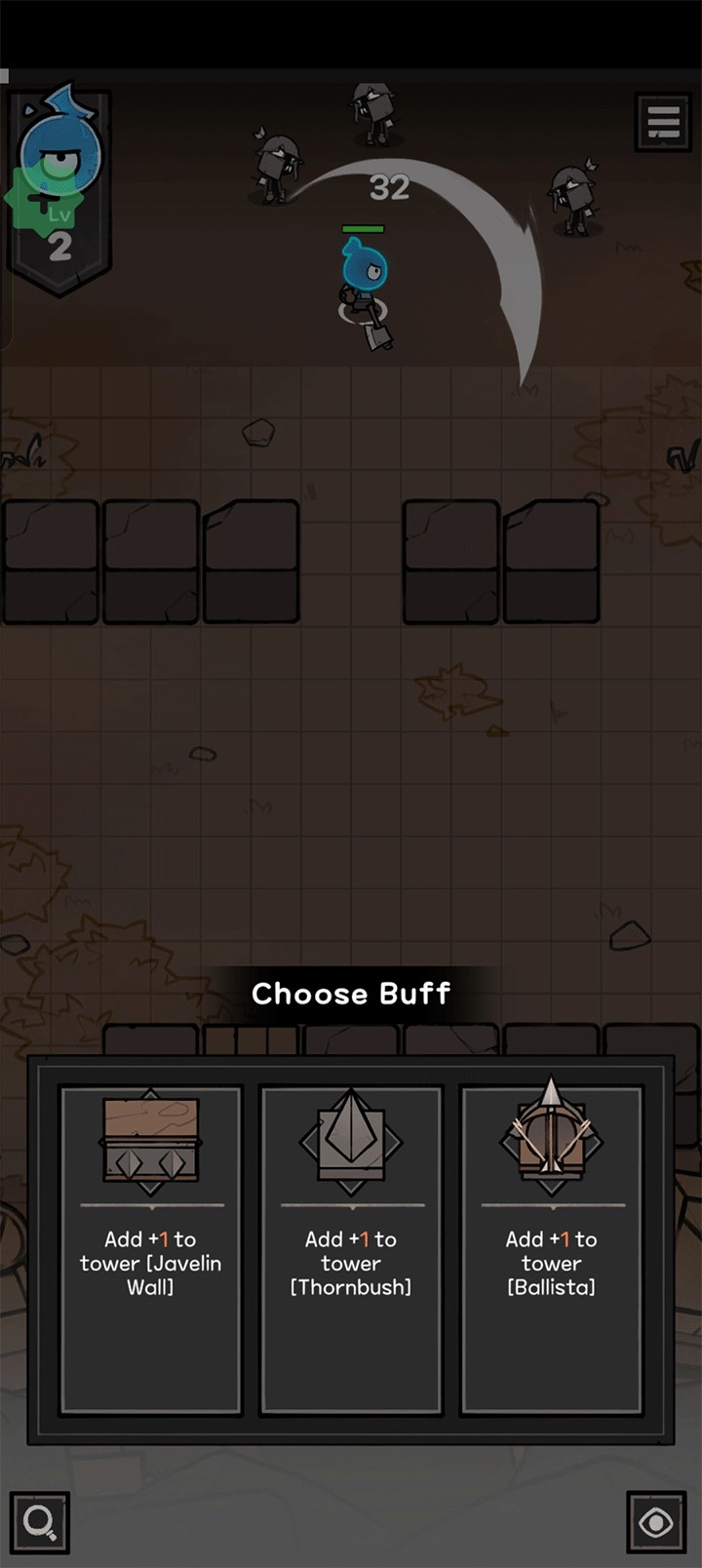 2、击败怪物提升等级,解锁卡牌奖励,并在地图上布置多样攻击装置。